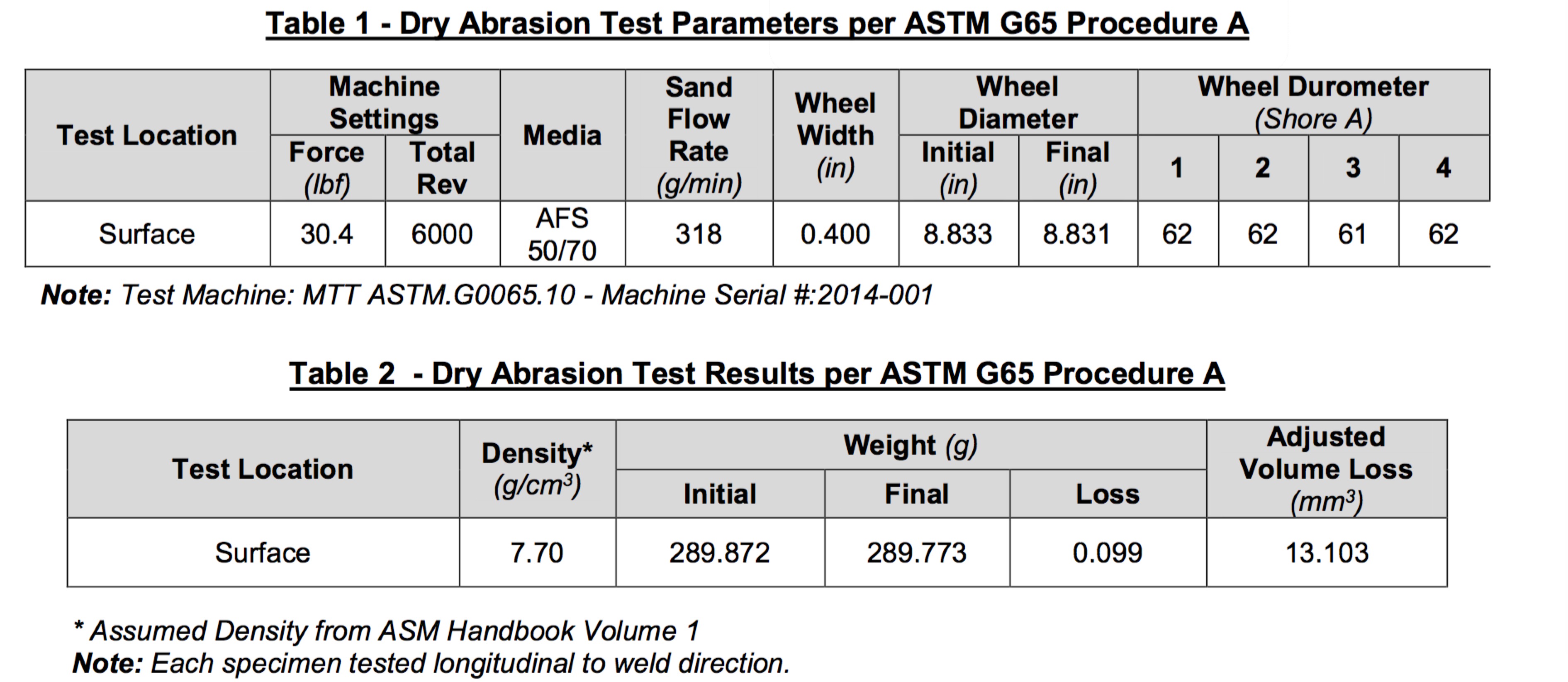 1. The wear resistance of ASTM-G65A dry sand is 20 times that of low carbon steel and 8 times that of heat-treated wear-resistant steel. The wear resistance of ASTM-G65A dry sand is higher than that of low carbon steel.